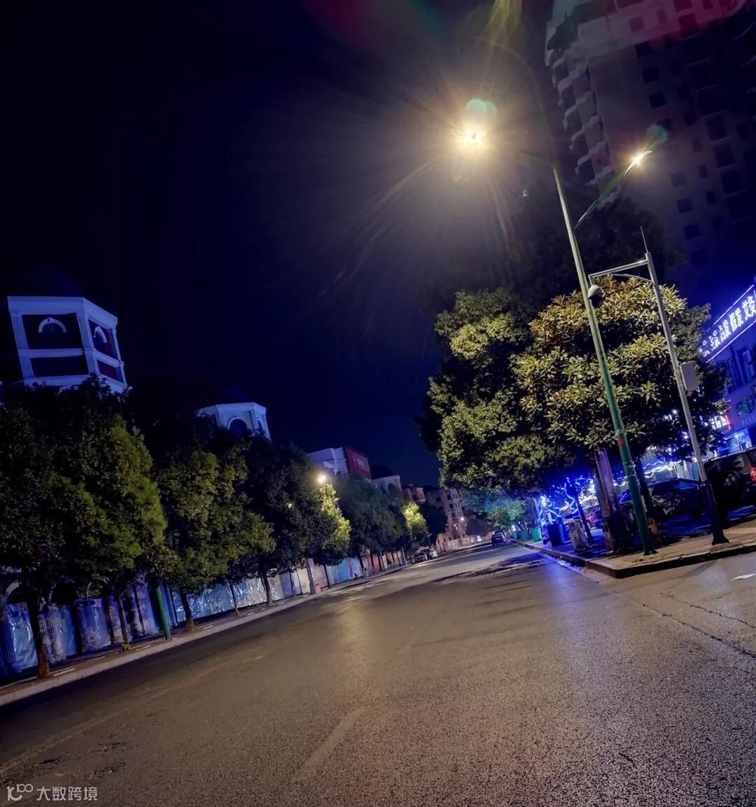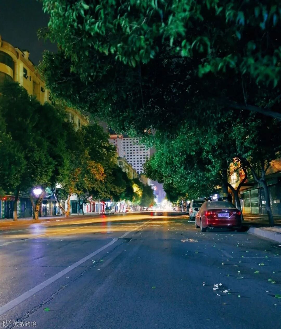地点辗转到解放东路,沿街商铺此刻也都打烊了,昏黄的路灯透过枝杈照射地面,让这条路显得格外的宁静。
