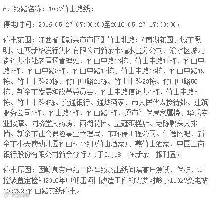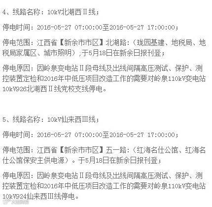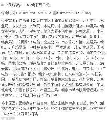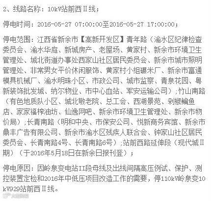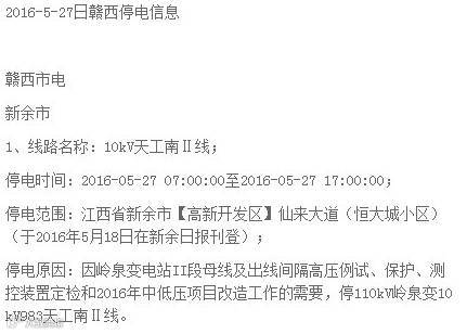 2016年5月27日赣西计划停电信息,请大家多多关注,提前做好停电准备。