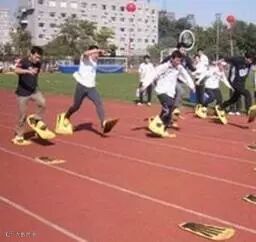 把脚绑在一起,要照顾好身边的TA哦~不然会跌倒的