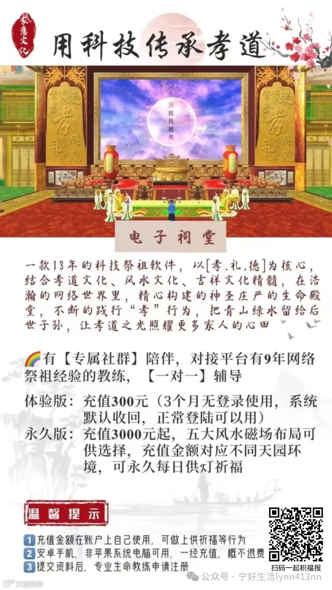 让您随时随地时时刻刻,都可以祭祖,不受时间和空间的限制,持续缅怀祖先。让祭祖习俗,孝道文化走进千家万户,让更多人更便捷的与祖先连根养根,焕发生命新能量。