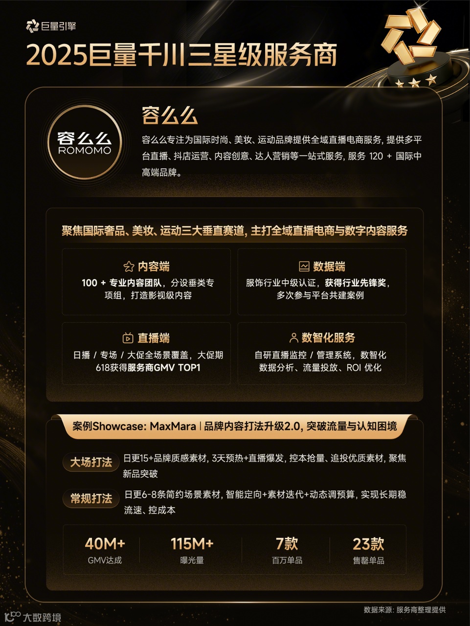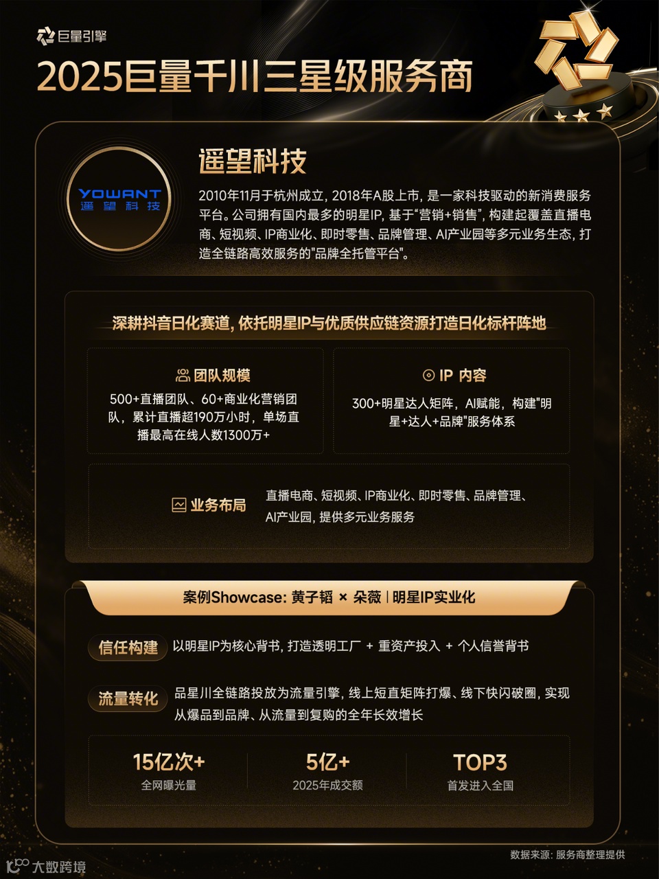 这批通过认证的高阶服务商,在内容创新破圈、直播精细运营、全域营销协同及爆品长效打造等方面具备突出优势,能为品牌方提供专业、高效的全域增长解决方案,也为行业服务能力提升树立了清晰标杆。据悉,巨量千川星级认证体系凭借标准化、阶梯式的机制,推动营销向多样化、专业化方向发展,成为电商领域衡量服务商综合能力的重要参考。