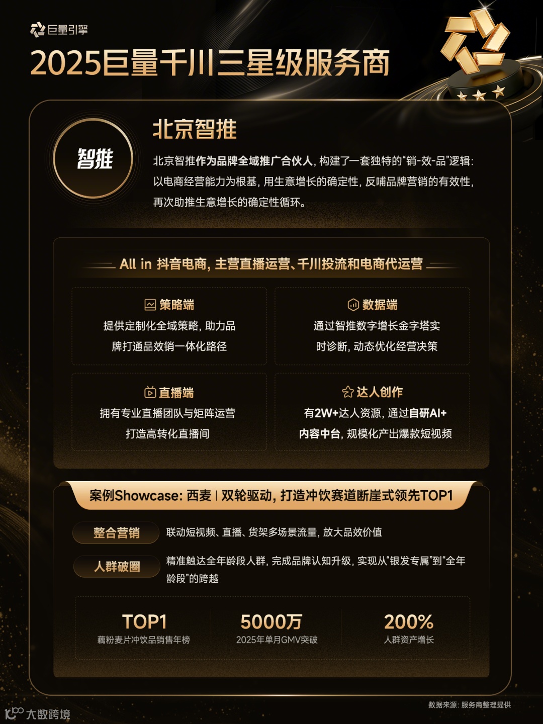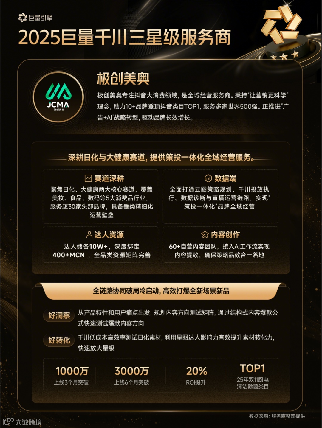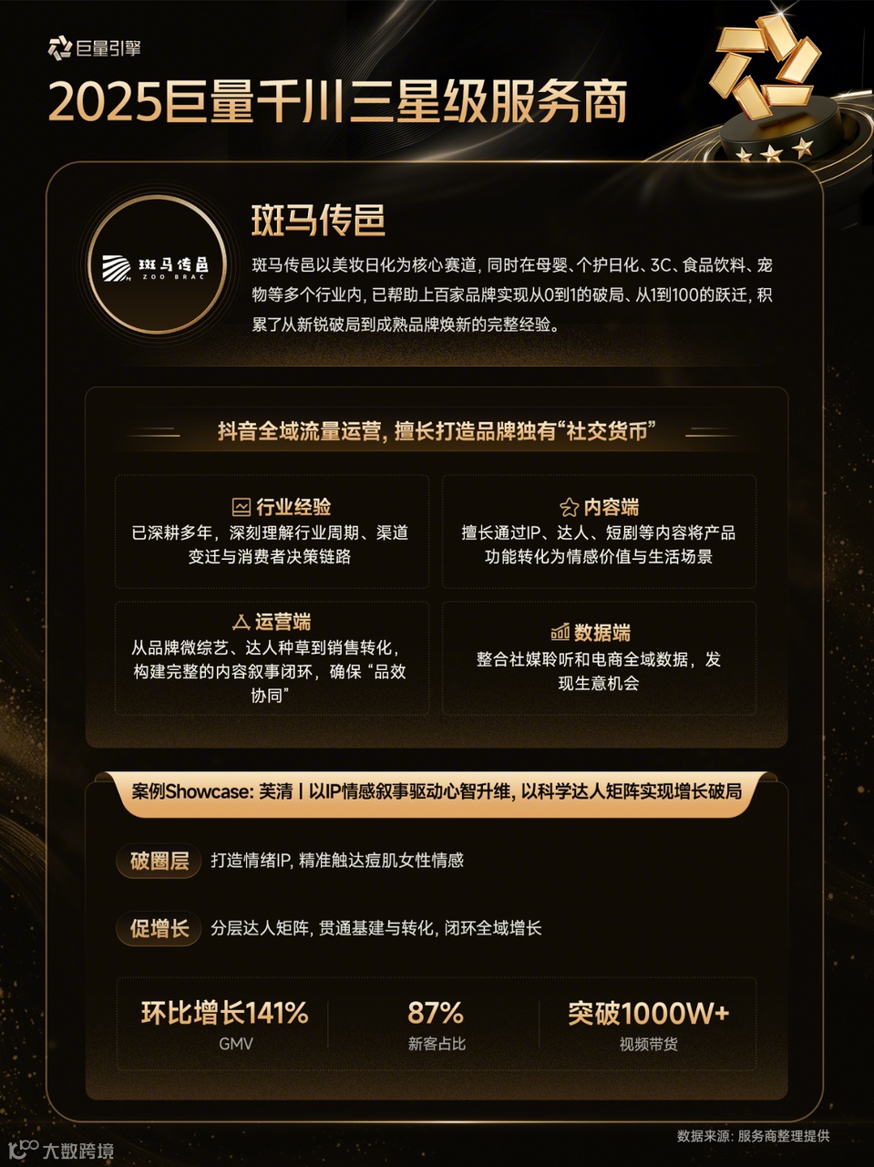 以下为28家通过认证的巨量千川三星级服务商详细情况(按照服务商名称首字母排序)