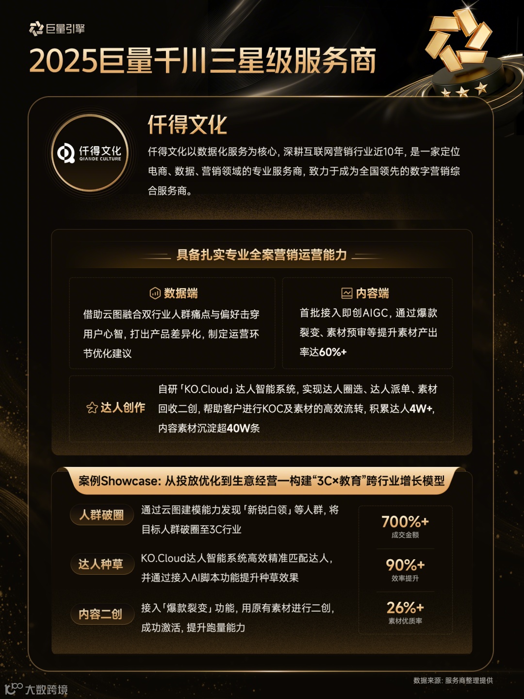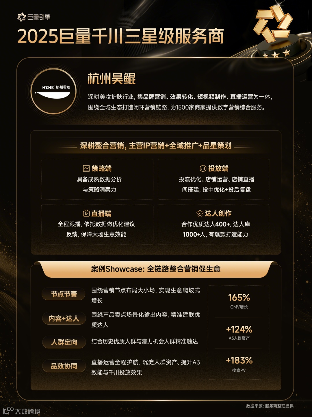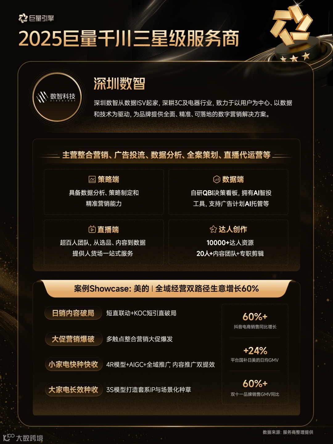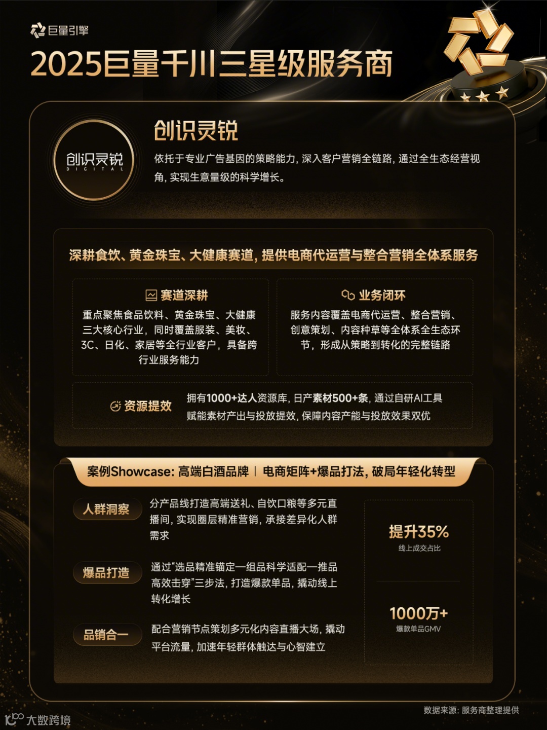 以下为28家通过认证的巨量千川三星级服务商详细情况(按照服务商名称首字母排序)