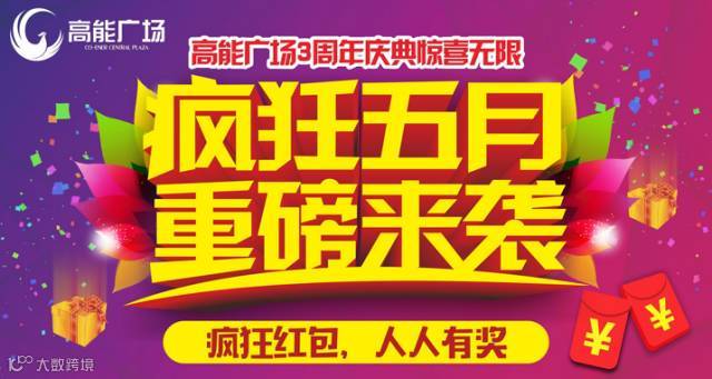 活动规则:活动期间高能广场全场任意消费满68元凭当日机打小票(含POS机)即可参加拆红包活动,100%中奖,即中即兑。
