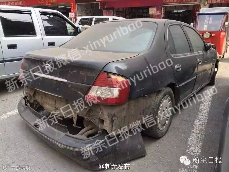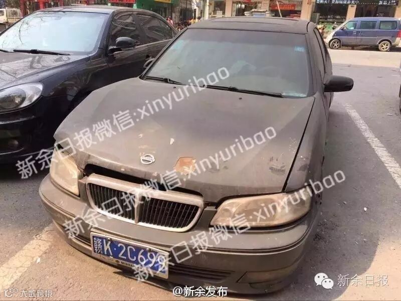 【新余有辆"僵尸车" 马路边上停了两年多!】据反映在胜利南路路边,有一辆东风日产,挂本地车牌,轮胎没气了,车尾零件也掉落了,车身落满了灰尘,停放时间非常长。停车收费人员说,这辆车停在这里已经两年了,他们也没法管,只能让车这样停着。