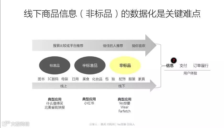 个性化购物已然成为年轻新生代的主流行为,如何解决个性非标品的数据化,成为促成用户线上交易的关键。我们发现,在数据化能力不够的当下,网红可以有效地帮助连接用户和商品,共享模型在购物消费领域同样适用。随着商品从标准品往非标品过渡,搜索变得不那么重要,推荐,则变得非常关键,一个是信任人的推荐,还有平台基于深度学习或者精准业态的猜你喜欢。