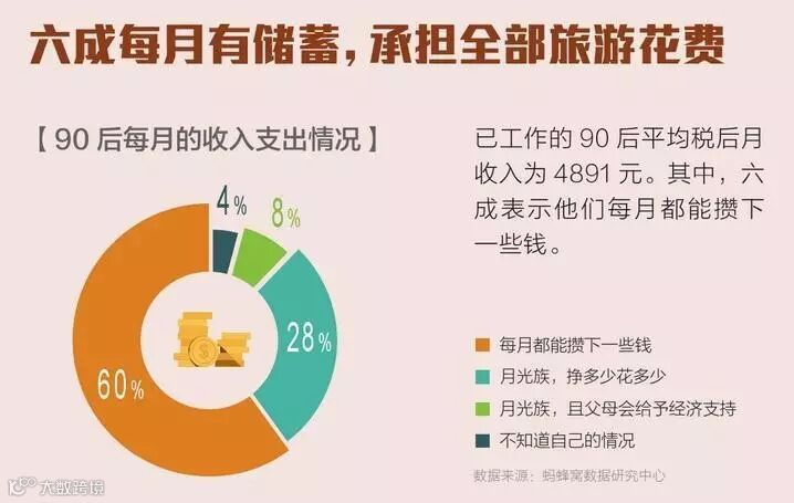 90后,比人们想象中更加经济独立。报告显示,有60%的90后每月都有储蓄,8%需要向父母寻求经济支持。