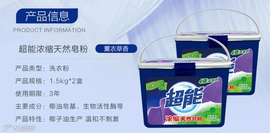 “超能”是纳爱斯集团继“纳爱斯”推出的第二个高端品牌,产品线主打天然皂粉,一般的洗衣粉都是化学合成的,他们却颠覆性地推出了天然皂粉,产品采用可再生天然油脂为原料,绿色环保,超低泡、强去污、易漂清、节水省时、不伤织物不伤手。