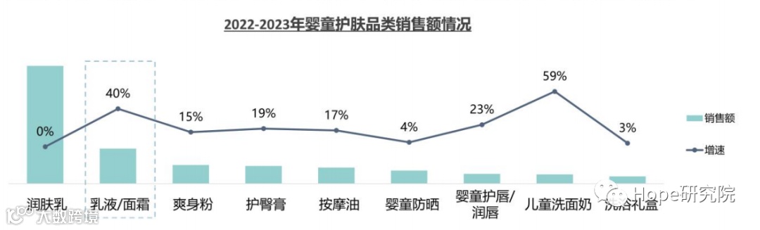 婴童护肤多品类呈现良好增长态势,其中乳液面霜是未来高潜力品类