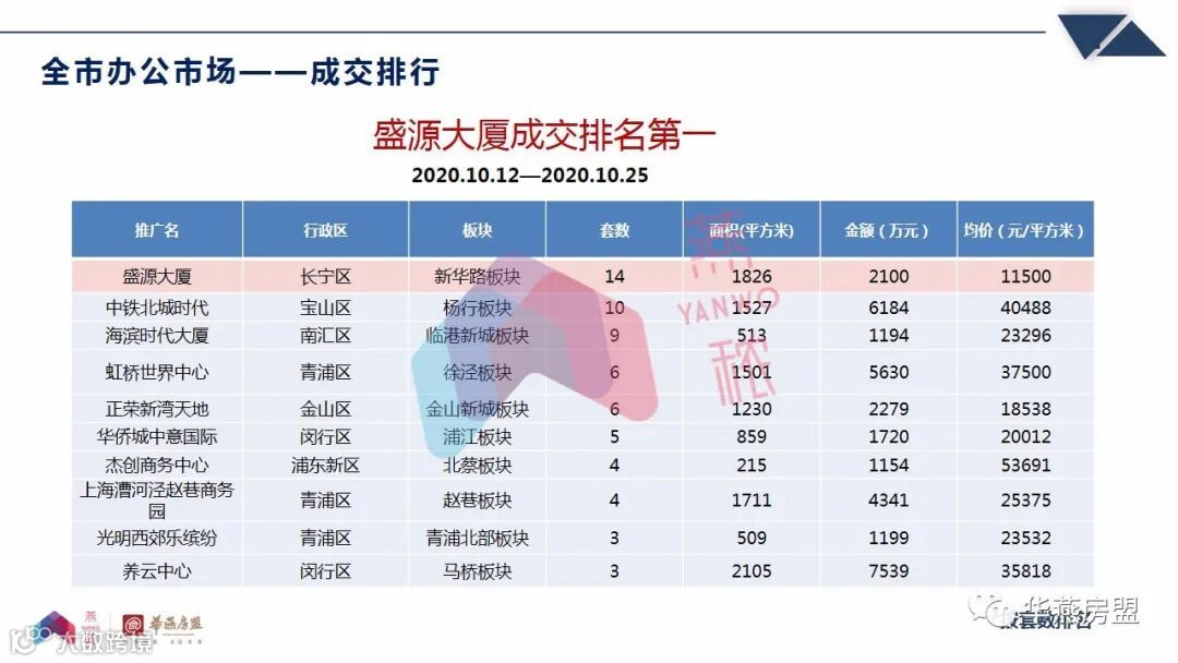 市场快讯 | 2020.10.12– 2020.10.25上海商办市场双周报