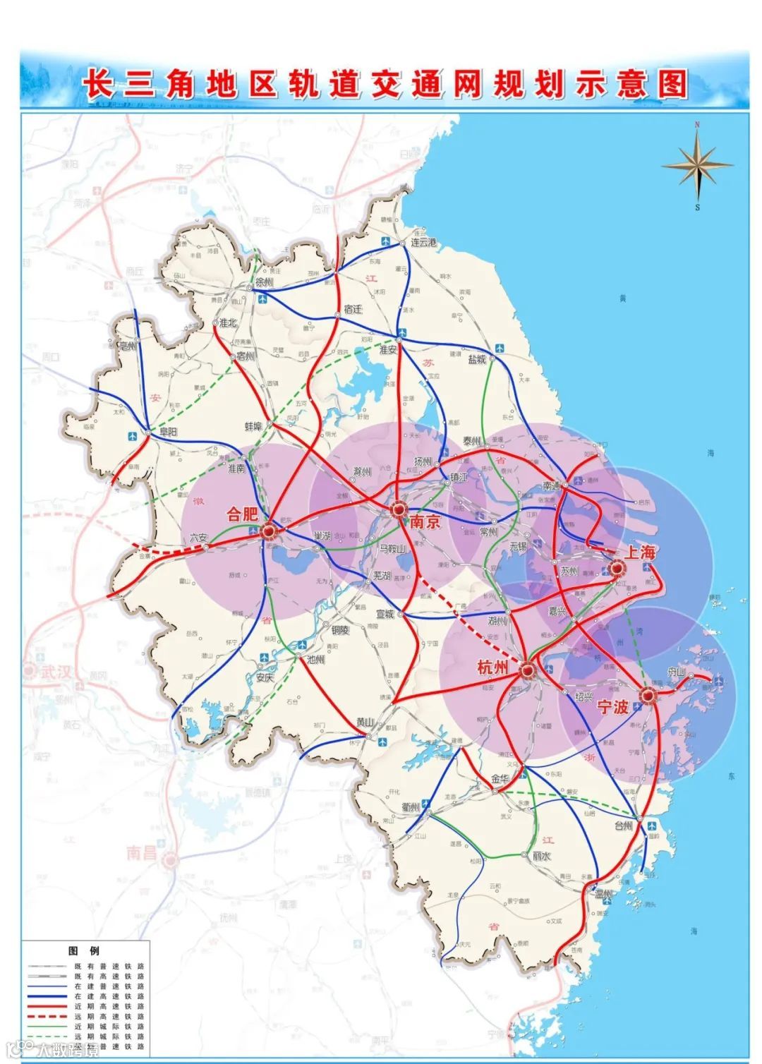 长三角地区轨道交通网规划示意图