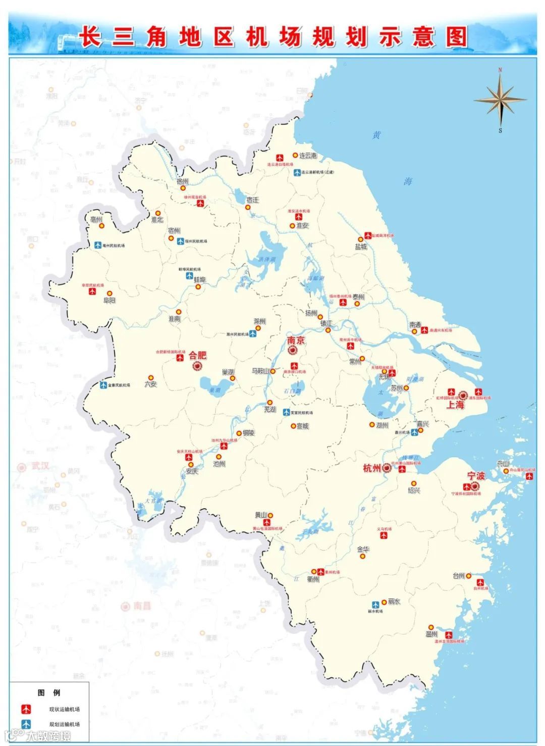 长三角地区机场规划示意图