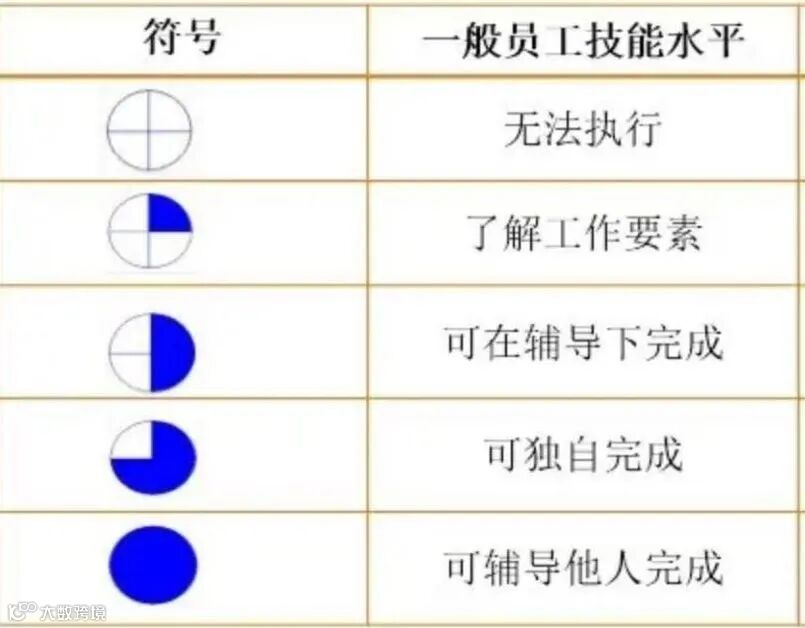 通过每项技能,对每个人的能力水平进行评分。推荐以下的评分标准 :