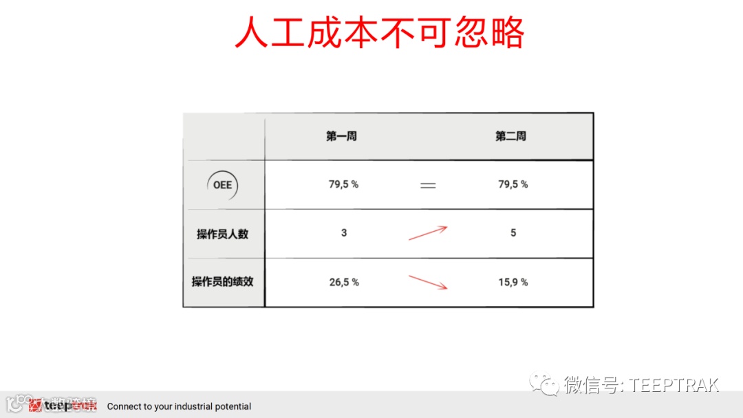 操作员的工资是公司的成本,为了达到79.5%的设备综合效率,为生产线分配了多少资源?如果不考虑操作员的数量,就等于是忽略绩效成本。