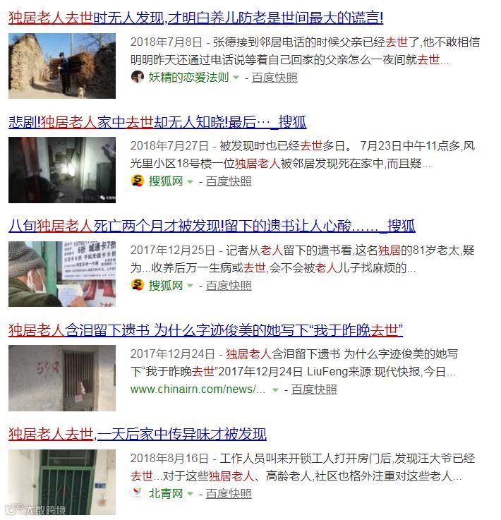 其实在全国各地,独居老人在家中发生意外却没人发现的新闻常有发生: