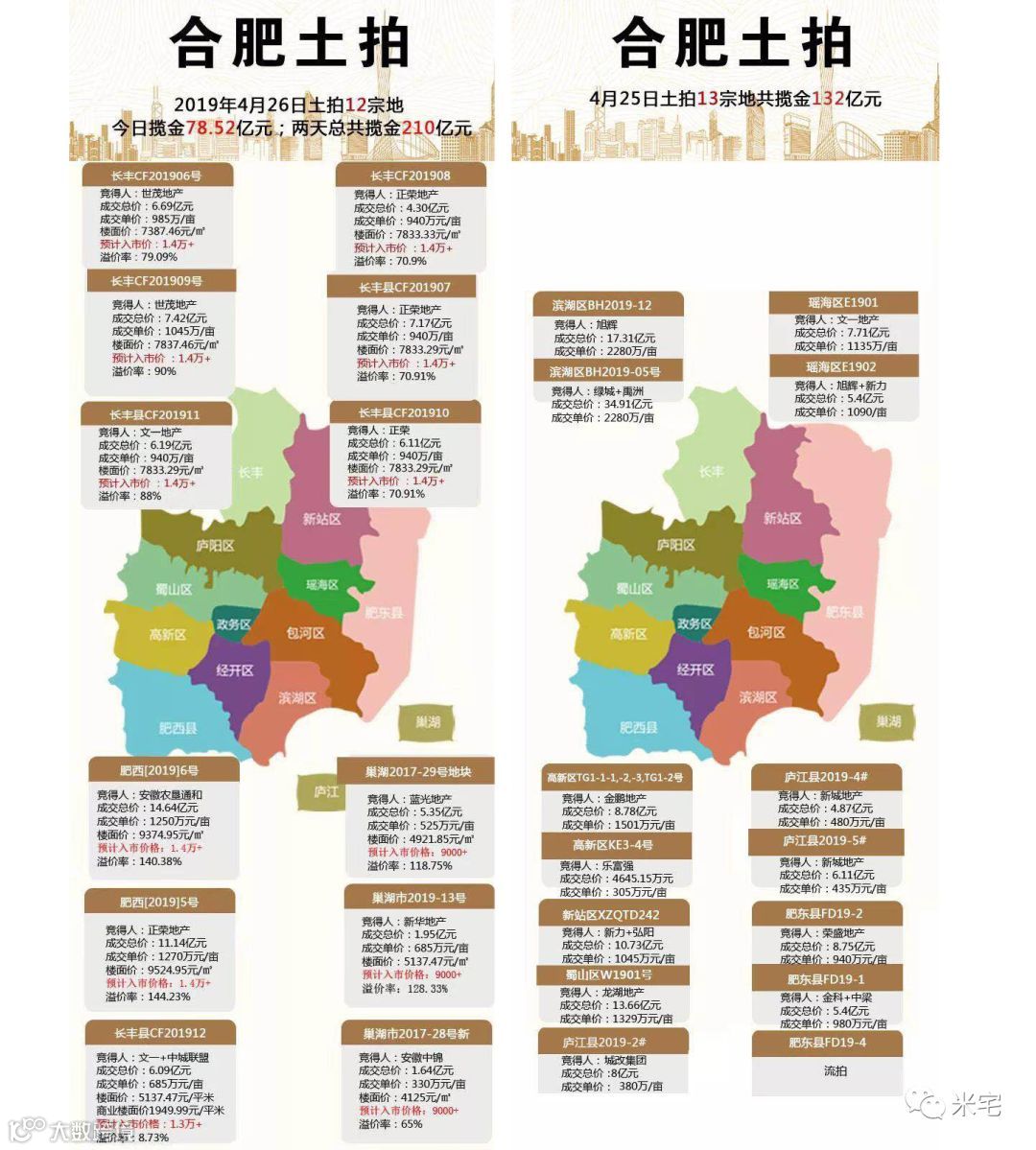 3月土拍刚刚过去,4月25日到26日,连续两天,合肥再次吸引了全国的目光,土拍战果惊人。具体的地块信息,微博微信数据非常详细,我就不再多讲。
