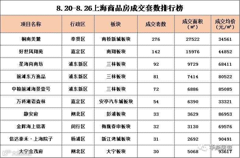 成交方面,榜单前三甲均为上周入市的项目,位于奉贤南桥新城板块的桐南美麓项目本周共计成交276套房源,该项目相较区域同质项目具有一定的价格优势,上周开盘后去化率高达95%,随着近年来南桥新城的规划利好,今年以来,该板块入市项目成交都取得不俗的成绩。