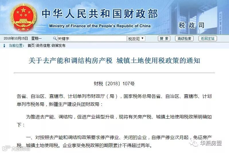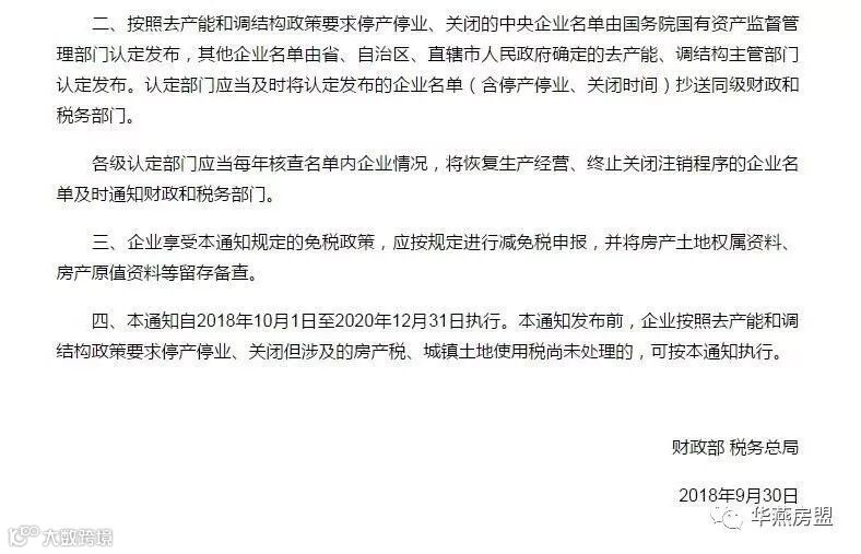 近日,为推进去产能、调结构,促进产业转型升级,明确有关房产税、城镇土地使用税政策,财政部发布《关于去产能和调结构房产税 城镇土地使用税政策的通知》,通知自2018年10月1日至2020年12月31日执行,具体内容如下