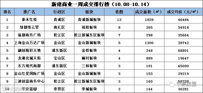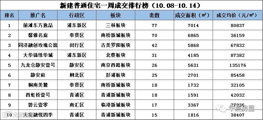 上周上海商品住宅市场成交面积11.33万方,相比十一长假期间成交量翻一番。上周前滩东方逸品项目继续领导,以77套的成绩位居榜首。本次排行榜上不乏一些市区的中高端项目,但受到项目高总价影响,市场表现平平。近年来受到调控影响,金九银十也失去以往的色彩,愈发平淡,目前楼市正处平稳期,或也将成为消费者们入手的好时机。