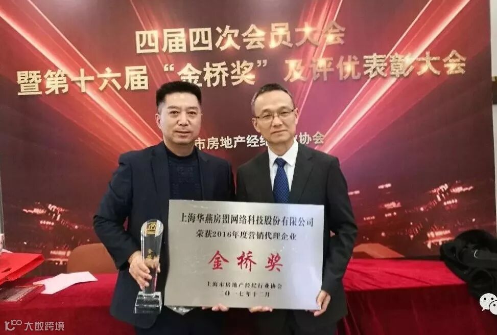 1月18日,在刚刚结束的上海市房地产经纪行业协会第四届四次会员大会暨第十六届“金桥奖”及评优表彰大会上,华燕房盟再次以无可争议的销售业绩、领先同行的互联网渠道优势以及专业严谨的服务态度蝉联上海营销代理行业最高奖---“金桥奖”,继续将上海营销代理前三甲再次稳稳地揽入怀中,董事长胡书芳女士也因近年来带领华燕房盟高速奔跑,斩获”优秀管理“大奖。