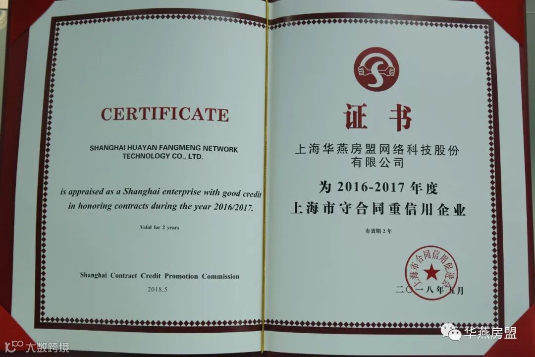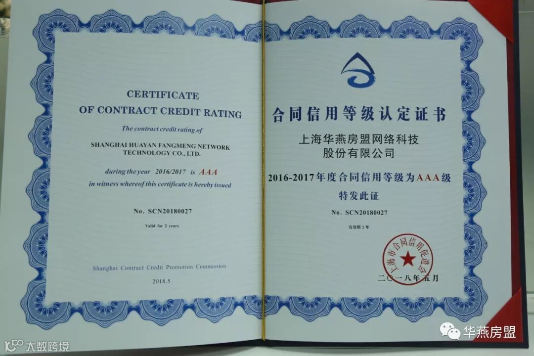 经上海市合同信用促进会审核评定,华燕房盟在2016-2017年度合同信用等级被认定为最高等级AAA级。自2009年获得“上海市守合同重信用企业”称号后,华燕房盟已连续十年获此殊荣。