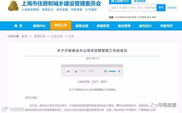 5月17日,上海市住建委发布《关于开展商业办公项目清理整顿工作的意见》,在全市范围内开展商业办公项目清理整顿,明确要求停止审批公寓式办公项目。