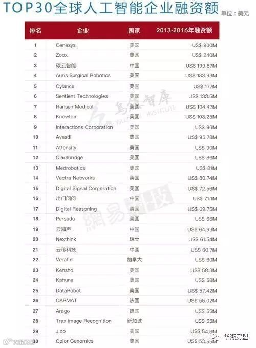 人工智能的高速发展已经让这一领域成为投资界竞相追逐的全新风口。根据相关统计,2013到2016年全球人工智能领域融资额TOP30领域绝大部分集中在美国,上榜的中国企业都是相关应用领域企业。但从2016开始,国内的各路资本开始觉醒,纷纷加入这场资本大战,人工智能的风口开始形成,中国有望在人工智能领域与美国进入同一起跑线,并加速弯道超车。