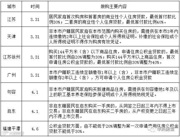 全国各级城市限购限贷继续升级。包括广州、江苏、天津等多个城市发布限贷政策,遏制房价过快上涨。