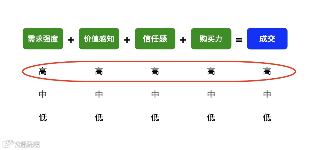 我们要用筛选高意向用户的方法,找出那些真正有需求的客户,然后通过我们的销售工具和服务,促成成交。
