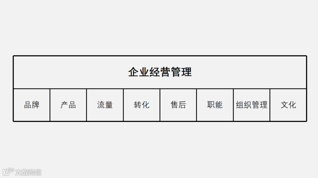 一级标题:梳理“企业经营管理”涉及哪几个板块,比如“品牌、产品、流量、转化、售后、职能、组织管理、文化”等模块。