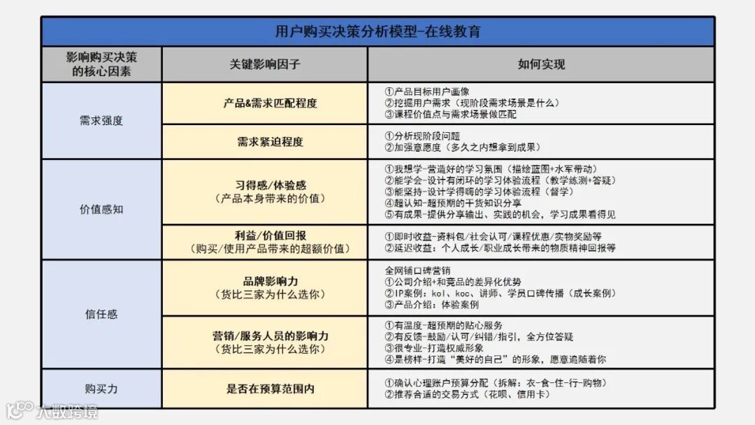 详细内容直接看图(如果不清晰的话,公众号后台回复“用户购买决策分析模型”即可领取高清大图)。