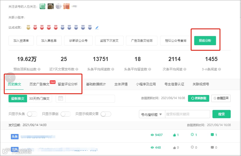 公众号投放要想实现转化成交,十分依赖活跃粉丝。通过看粉丝粘性可以帮我们评估账号的商业价值。