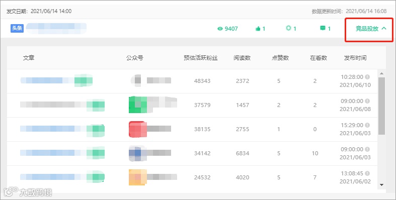 跟投竞品是指通过“西瓜数据”等工具去关注竞品投了哪些账号。