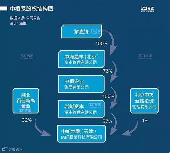 其中,中植集团子公司岩能资本为中纺丝路第一大股东,持股67%,解直锟100%控股的中海晟丰(北京)资本管理有限公司又持有中植集团76%的股权,因此美尔雅实际控制人为解直锟。