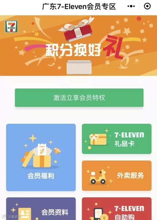打开“广东7Eleven”可知,这是一个主要针对7-11便利店会员的小程序,除了会员福利之外,它还同步推出了礼品卡、外卖服务和自助购。