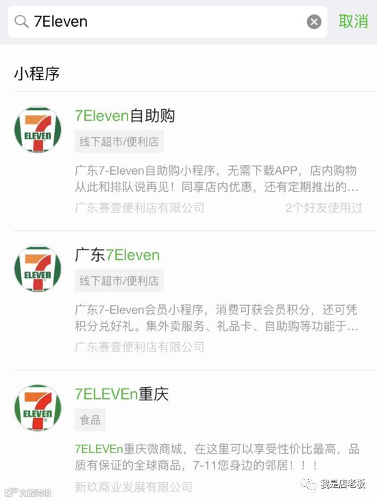 据小编的了解,目前在微信小程序搜索“7Eleven”会出现3个小程序,分别为“7Eleven自助购”、“广东7Eleven”以及“7Eleven重庆”。
