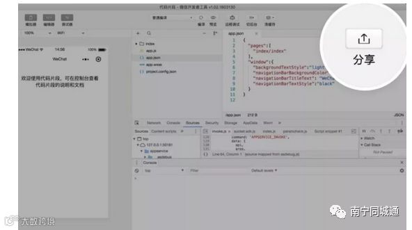 此外,开发者工具新增了“代码片段”功能。代码片段是一种可分享的小程序项目,开发者可以生成项目链接让他人在开发者工具中导入和运行小程序代码,便于开发者之间分享小程序开发经验、学习小程序教程、反馈 bug 等。