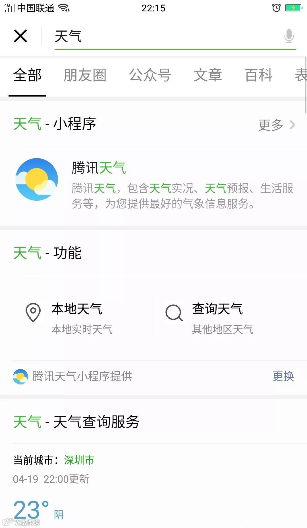 微信服务直达能让微信用户快捷找到服务的搜索功能,比如在微信里搜索“天气”、“电影票”相关关键词,微信就会在结果中,直接展示相关小程序具体页面。