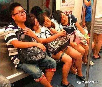 1、今天坐地铁,有三个妹子陪我,你信不?