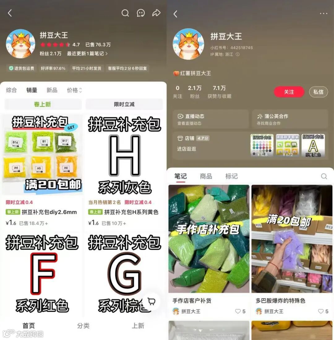 今天给大家拆解一个在小红书闷声搞钱的商家博主@拼豆大王,他把“拼豆”这个小众品类的小生意,做得又稳又赚。