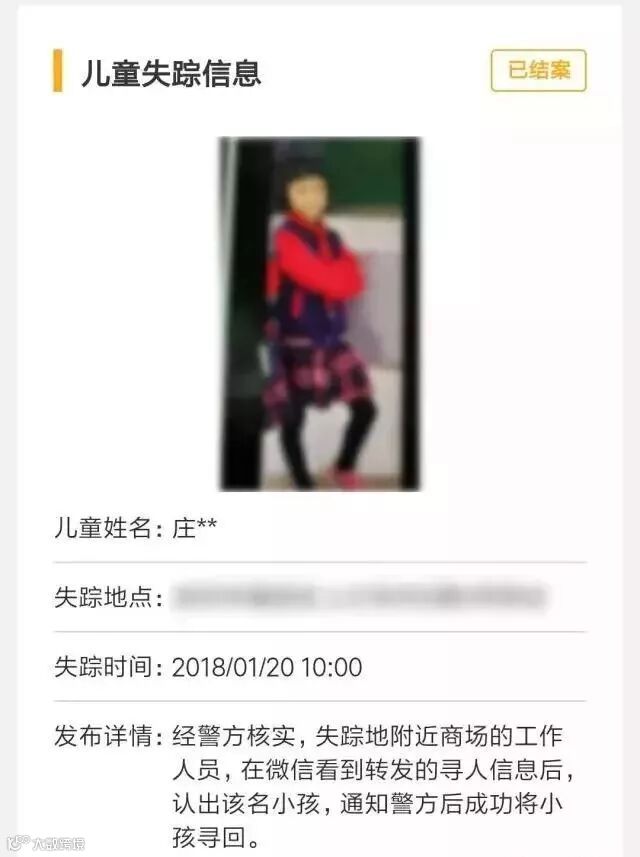 微信团队了解情况后,当晚便在“儿童失踪信息紧急发布”小程序上向三万志愿者有地点针对性的推送了相关信息,协助警方寻找失踪女童。