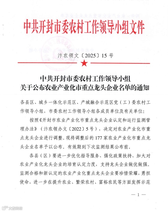 近日,中共开封市委农村工作领导小组公布了一批农业化市重点龙头企业名单,河南比赛尔农业科技有限公司凭借其在绿色农业技术研发、全产业链服务整合及对区域农业现代化的突出贡献,成功被认定为 “农业产业化市重点龙头企业” 。这一官方评选结果,标志着公司在推动农业高质量发展、践行乡村振兴战略方面的实践与成效,获得了政府与社会各界的高度认可。