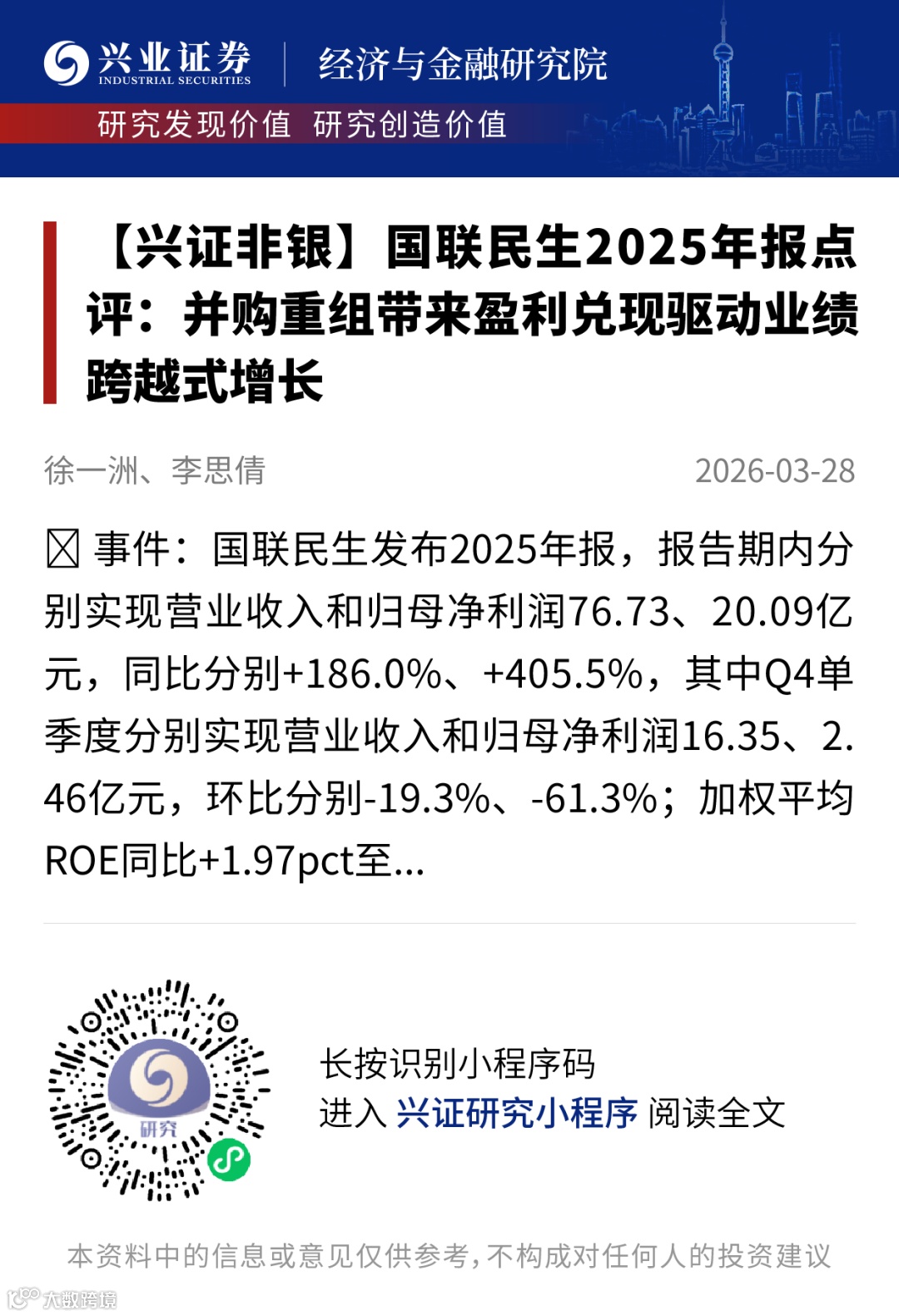 证券研究报告:《国联民生2025年报点评:并购重组带来盈利兑现驱动业绩跨越式增长》