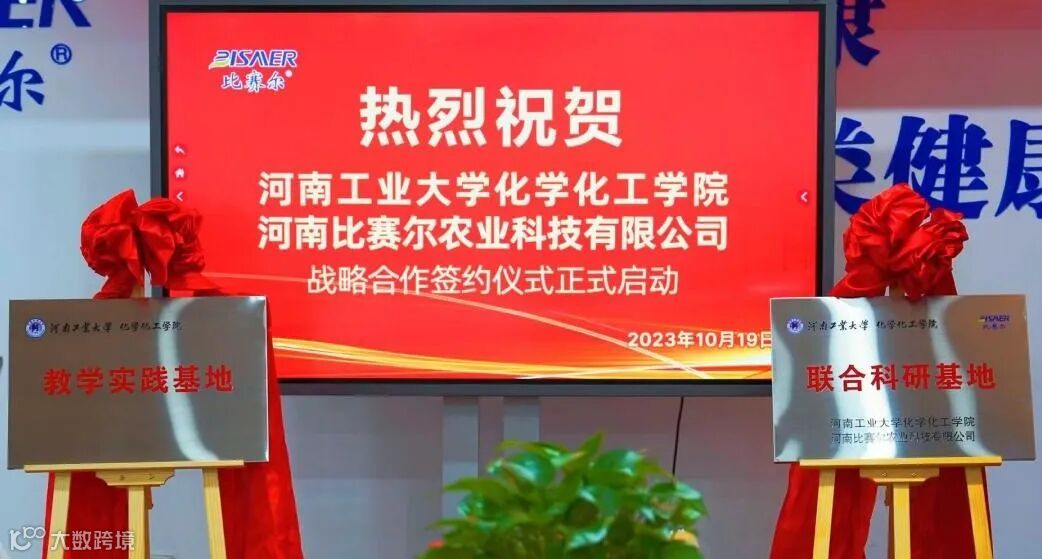 双方表达了强烈的合作意向,并达成战略校企合作,产学研合作,并授予我司“联合科研基地”、“教学实践基地”的荣誉称号。并举行了隆重的签约揭牌仪式,签约揭牌仪式的举行标志着比赛尔农业与河南工业大学校企合作掀开了新的一页。