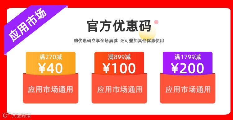 补充:本次活动可组合优惠码一起使用,应用市场全部商品+服务费均可使用,抢到爆!