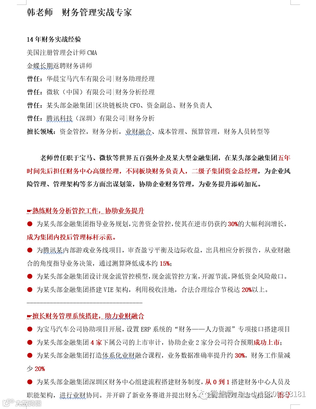 师资优选:  财务管理实战_韩老师 上海企训企管
