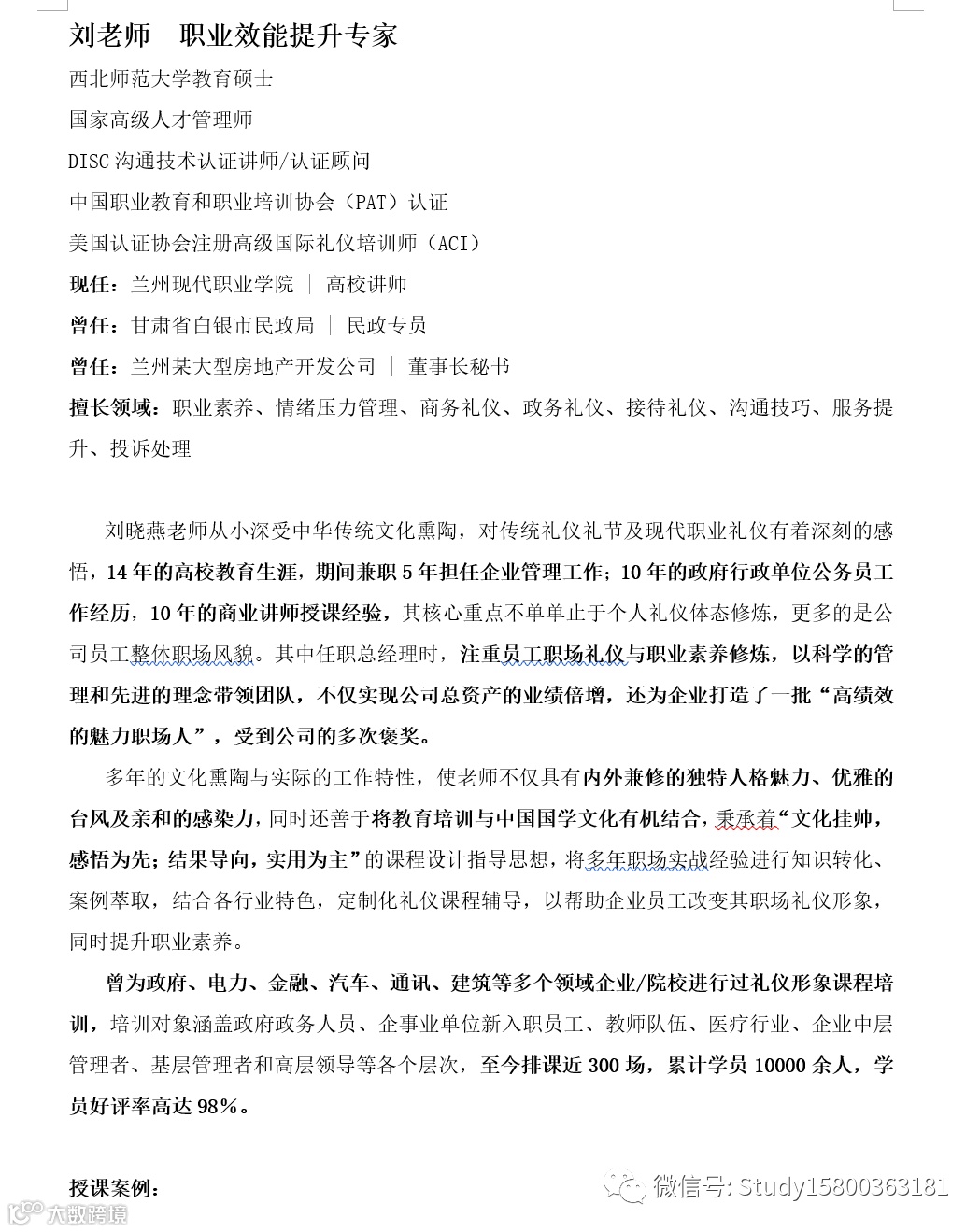 师资优选:   职业效能提升_刘老师 上海企训企管