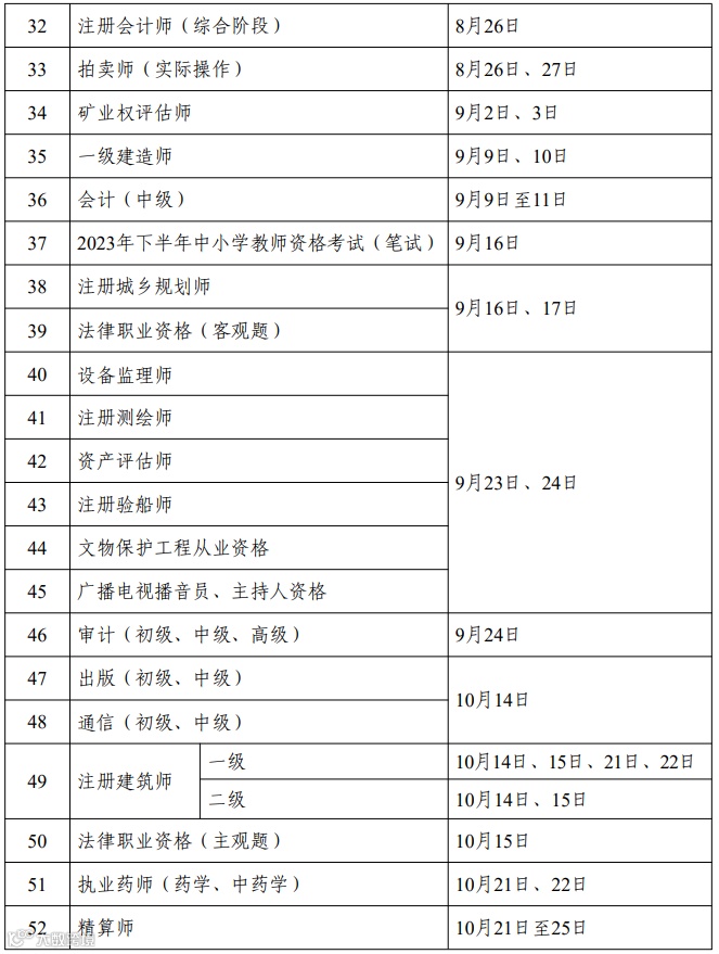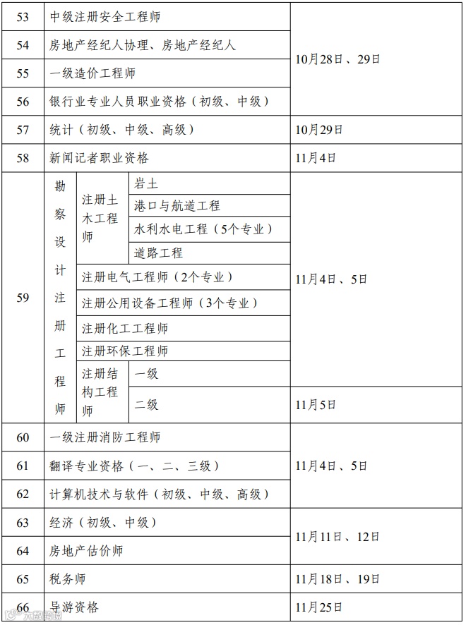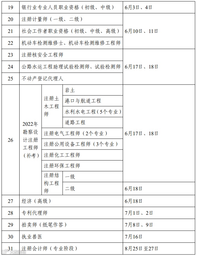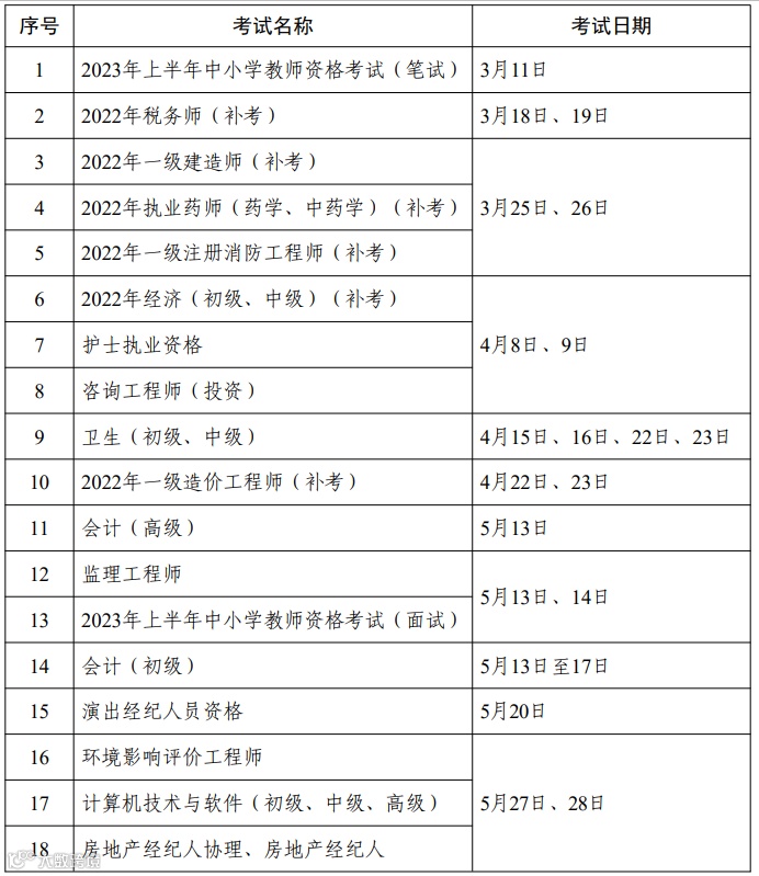 为统筹做好专业技术人员职业资格考试规划和管理工作,便于广大专业技术人员参加职业资格考试,经商有关部门和单位同意,现就2023年度专业技术人员职业资格考试计划及有关事项通知如下: