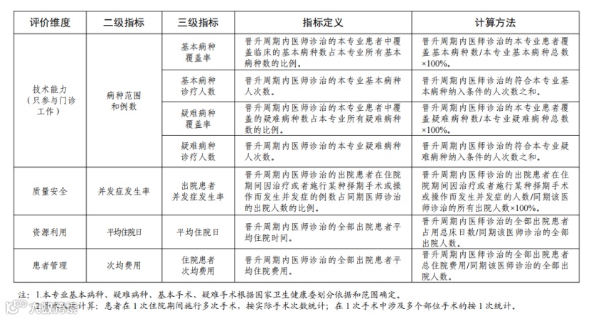 安全、资源利用、患者管理等维度科学评价申报人执业能力水平。将诊治病种范围和例数、手术难度和例数、术后并发症发生率、平均住院日和次均费用等作为重要评价指标,具体见附表2。