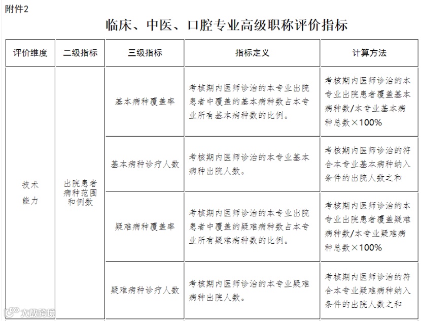 2.临床、中医、口腔专业高级职称评价指标